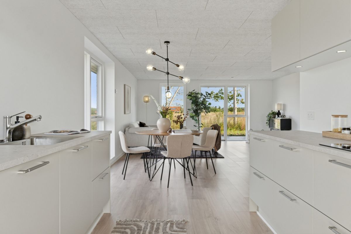 Fælles for alle boliger er, at de får to flisebelagte terrasser og egen have. Køkken og bad leveres fra HTH, og alle boliger udstyres med alt i hårde hvidevarer.