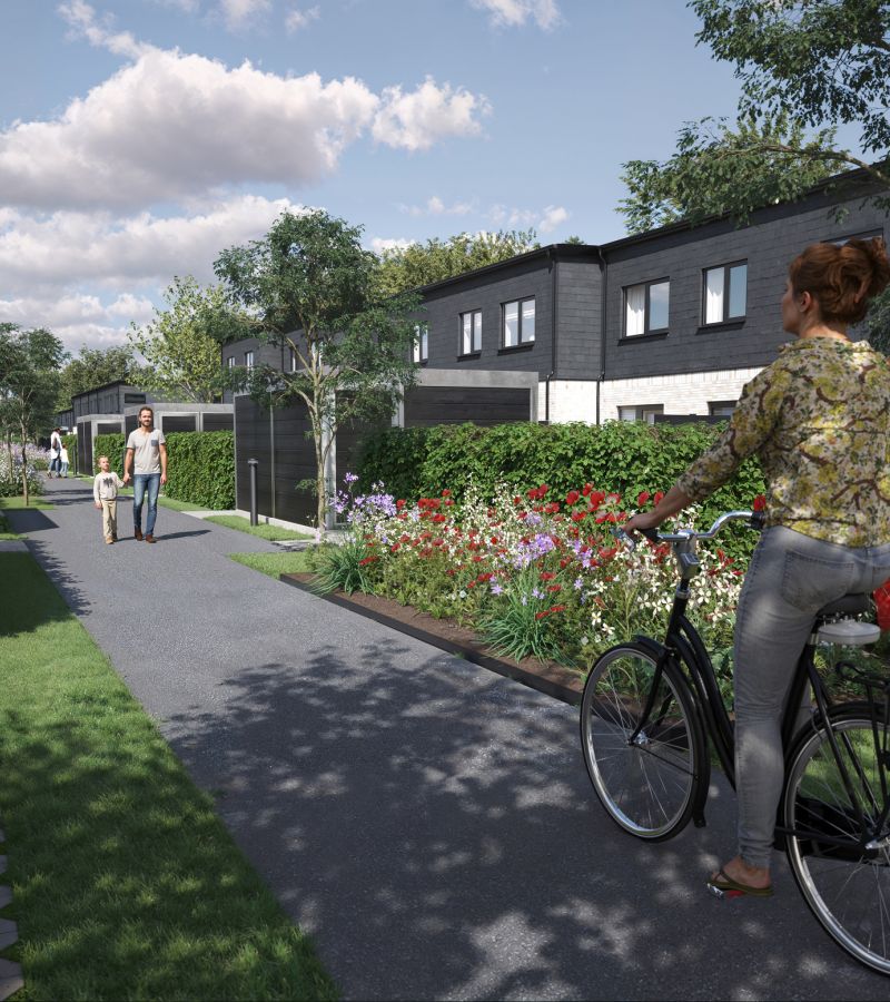 Dit nye hjem kan blive i en af de 54 energivenlige og moderne rækkehuse udført i et spændende og tidløst look.