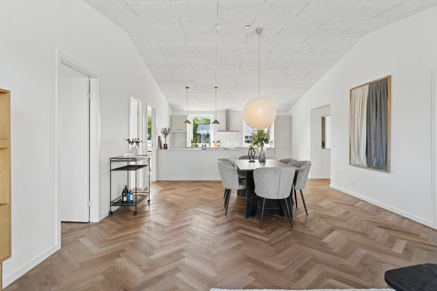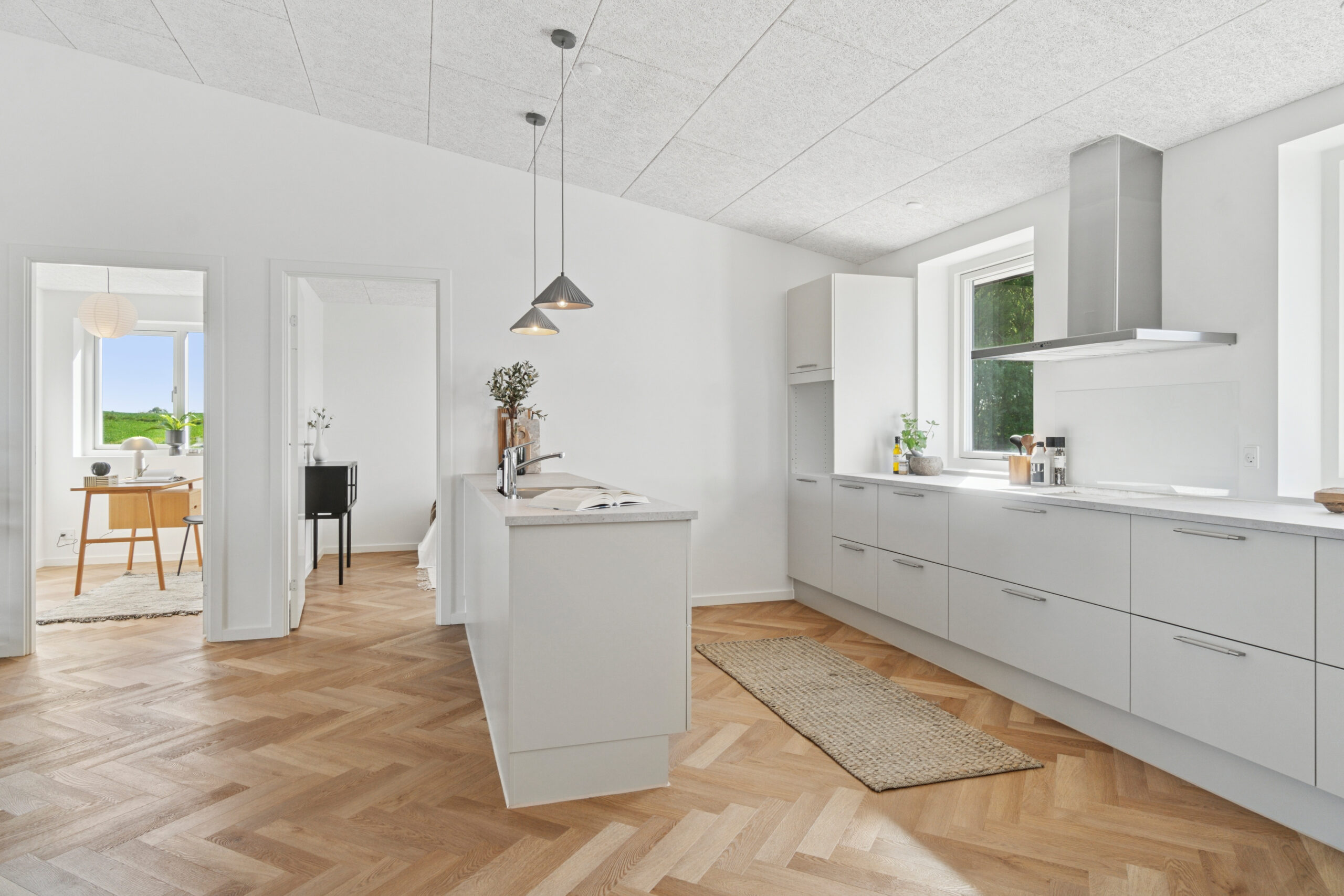 Boligerne indrettes alle som vores Premium boliger med sildebensgulve (laminat) og midterboligerne har desuden hævet loftshøjde i form af skrålofter.