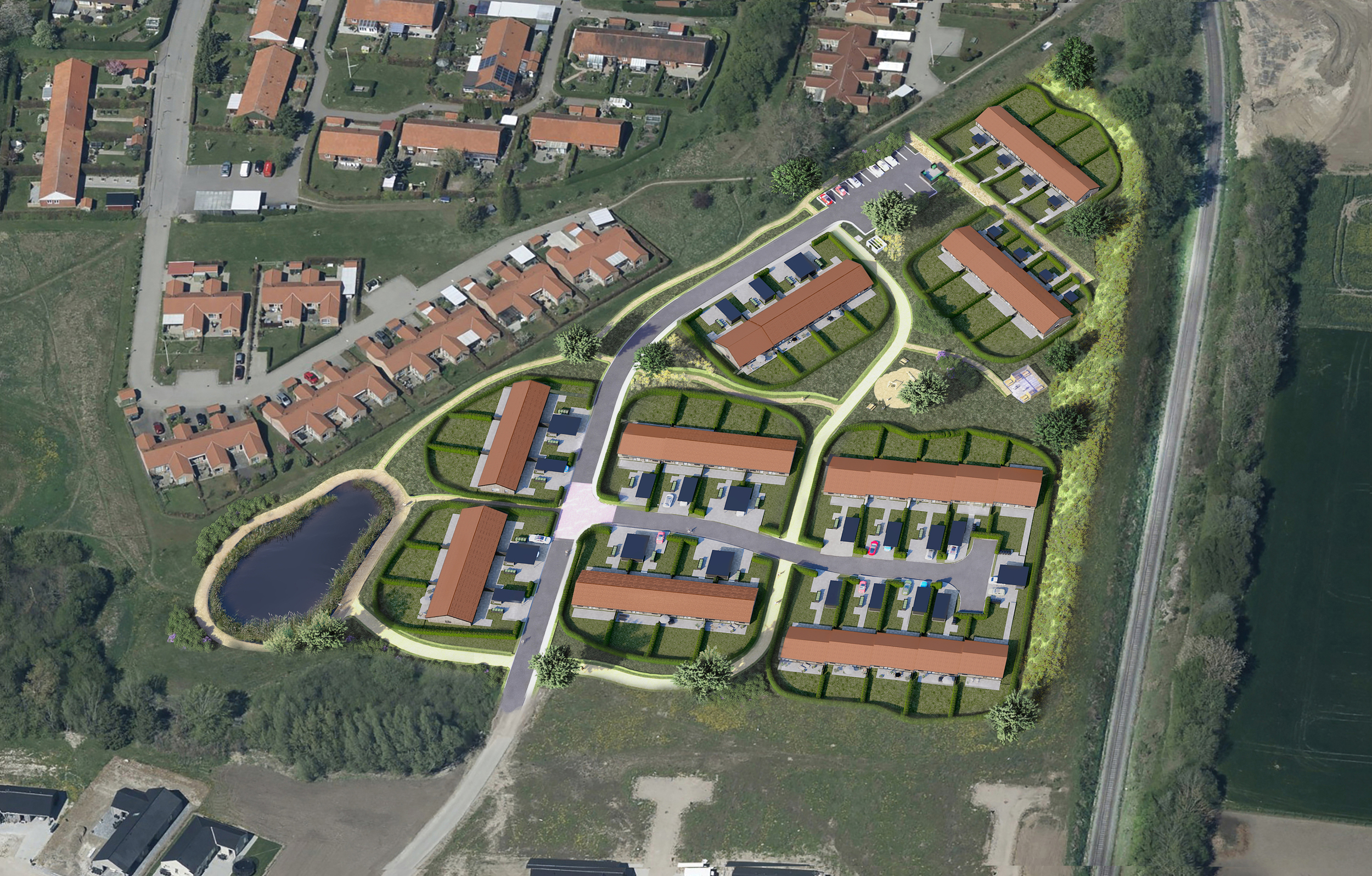 Bebyggelsen vil bestå af 36 rækkehuse. Rækkehusene forefindes i størrelserne 95 m², 105 m² og 115 m² – Indrettet som 3-5 værelses. En mindre del af boligerne opføres som “Premium boliger”, hvilket omfatter et opgraderet HTH køkken samt sildebensgulv i laminat. En del af disse har ligeledes loft til kip i alrummet.
